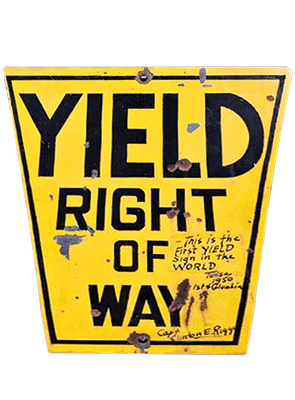 The original yield sign was a white keystone with the words “Yield Right of Way” in black letters. It was placed at the intersection of First Street and Columbia Avenue in Tulsa. Within a year of its installation, the accident rate at the intersection dropped by 70%.